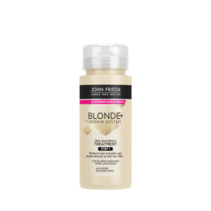 Nema više kompromisa između boje i zdravog izgleda kose. Blonde+ Repair tretman prije šamponiranja prvi je korak u sustavu u 3 koraka. Jača kosu i u samo jednoj minuti** vidljivo popravlja oštećenja uzrokovana bojanjem, izbjeljivanjem i toplinskim oblikovanjem. Nadahnuta salonima i potpomognuta znanošću, ovo je najjača linija za obnavljanje plave kose do sada, obnavlja kosu dok je štiti od budućih oštećenja, za vidljivo zdraviju, 2 x svjetliju* plavu kosu.