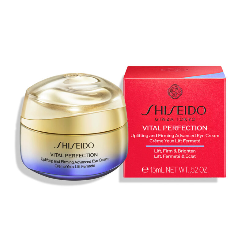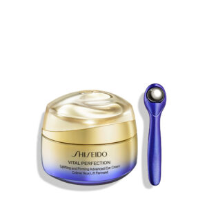 Shiseido Vital Perfection Uplifting & Firming Eye Cream vidljivo smanjuje bore, tamne podočnjake i opuštenost očiju već u 1 tjednu. S formulom SafflowerRED i japanskim masažnim valjkom, podiže, učvršćuje i posvjetljuje kožu. Dermatološki testirano, ne-komedogeno. Za blistav, mladolik i definiran izgled očiju.