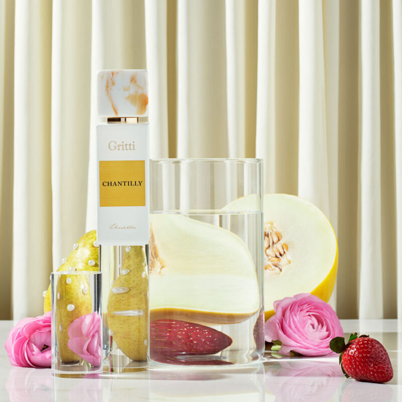 Chantilly: dragulj umijeća izrade čipke, cijenjen zbog svog profinjenog, laganog i razigranog karaktera. Glatka čipka lako prepoznatljiva po cvjetnim i voćnim girlandama, potječe iz istog francuskog grada kao i ukusna krema Chantilly. U istoimenom mirisu Luca Gritti spaja svježinu ljetnog voća s nijansama vanilije. Sočnost jagode i nježnost cvijeta crnog ribiza daju mu živost i bezbrižan duh.