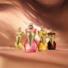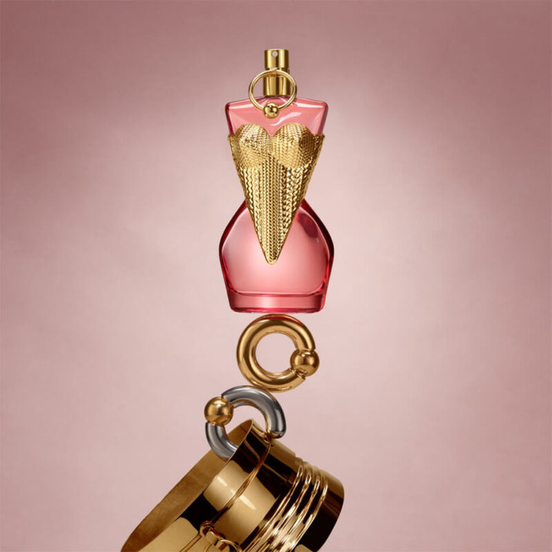 U živahnim ateljeima Jeana Paula Gaultiera oblikuje se silueta Gaultier Divine Couture: senzualan, voćno-amberni parfem s haute couture sjajem. Sočna malina, odvažna beze krema i intenzivan benzoin obilježavaju njezin magnetski i beskompromisan stil. Njezina ružičasta lakirana bočica koja se može ponovno puniti privlači svaki pogled, dok zlatni piercing i pleteni korzet oblikuju siluetu iz snova krojača. Ovo nije samo miris; ovo je komad koji se nosi na koži. To je korak u vlastitu božansku moć.