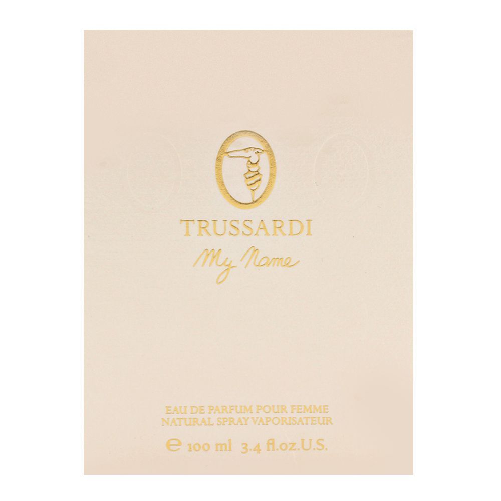 My Name, miris istražuje više ženstveniju i osjetilniju stranu branda kroz projekt baziran na temama otkrivanja i ispitivanja vlastitih misli i osjećaja. Delikatna kompozicija bijele ljubičice i heliotropa, ljiljana i aro cvijeta upotpunjena s vanilijom ambroxan notama, otkrivaju zavodljivu i samosvjesnu ženu, uz naglasak na Trussardi eleganciju. Bočica koju je dizajnirao arhitekt Antonio Citterio, predstavlja eliptičan čep s retro naglaskomna ovalne elemente koji su vidljivi i na pakiranju, toliko tipični za Trussardi brand.